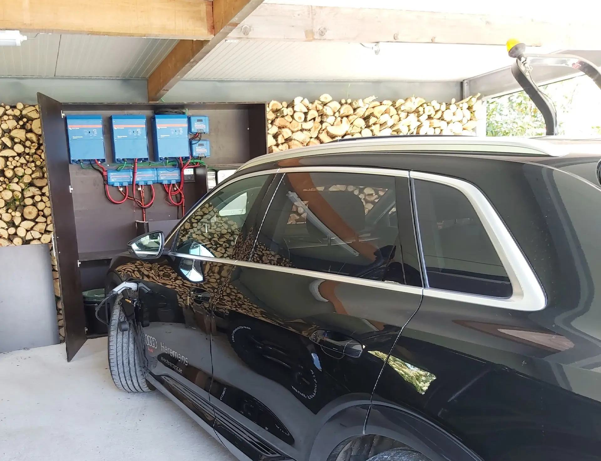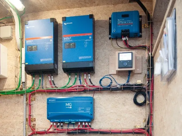 Our semi off-grid system is a solution for this. With this system, we work off-grid as much as possible; completely off-grid is unrealistic in Belgium. So a generator often has to be provided, but these are expensive, noisy and polluting. On the other hand, the grid is still the cheapest power supply.