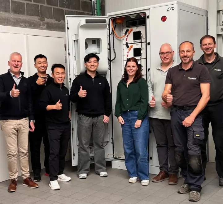 Ce mois-ci, nous avons mis en service notre propre armoire de batterie extérieure ZYC. Le système dispose d’une puissance d’onduleur de 50 kW et d’une capacité de batterie de 92 kWh. Nos clients sont cordialement invités à venir découvrir le système de près dans nos bureaux à Wommelgem.